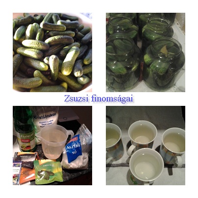 Az uborkákat nagyon jól megmossuk, majd az üvegbe rendezzük, úgy, hogy minél több beleférjen. Az egyik teli üvegbe bögrével vizet teszünk, és számoljuk hány bögre víz fér bele (erre a lé mennyisége miatt van szükség), majd leöntjük az uborkáról a vizet. A fűszereket (köménymag, egész bors, babérlevél) beletesszük az üvegekbe.
